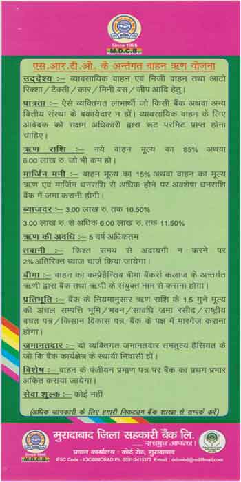 एस. आर. टी. ओ. के अन्तर्गत वाहन ऋण योजना